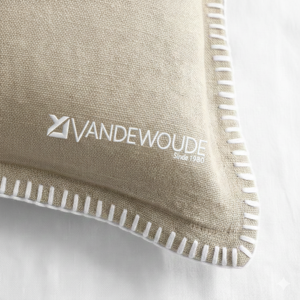 - Verticale Steek: Steek de naald een stukje verder langs de rand weer van voor naar achter in de stof, maar trek de draad nog niet helemaal door. Je houdt nu een lus aan de voorkant over.